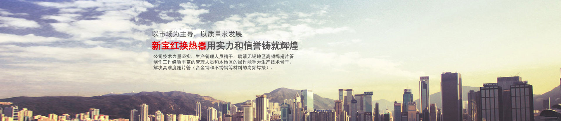 無(wú)錫市新寶紅換熱器有限公司 ???????無(wú)錫市新寶紅換熱器有限公司位于美麗的太湖之濱,是一家專業(yè)生產(chǎn)翅片管,翅片管換熱器,高頻焊螺旋翅片管,熱管式換熱器的廠家。